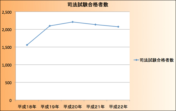 さらに、法務省は2010年をめどに司法試験の合格者数を3000人にするという目標を掲げていたにも関わらず、実際の合格者数は2074人にとどまりました(2010年9月9日法務省発表)。